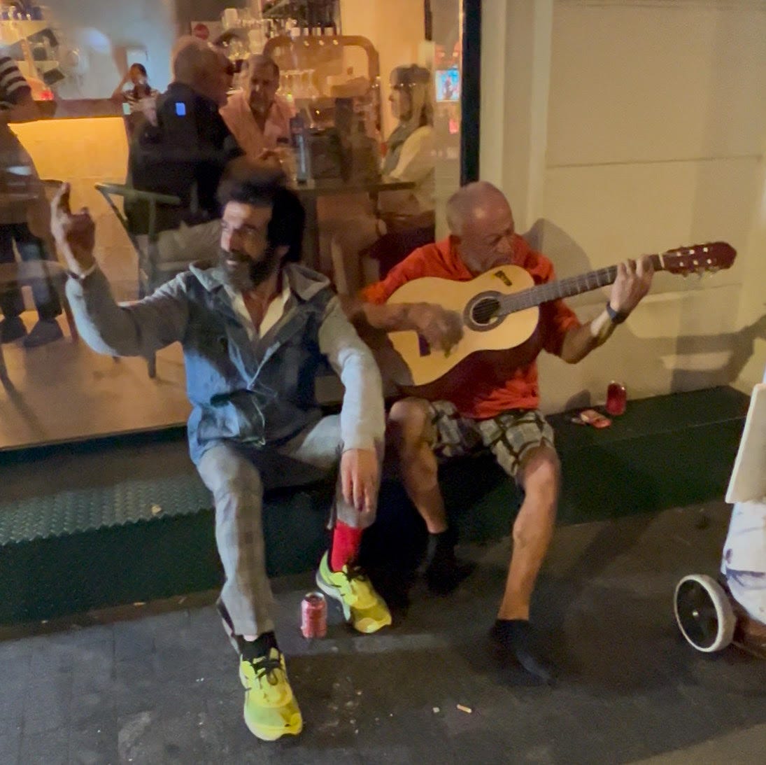 At this point, I saw an old man busker just finishing up a song on his Spanish guitar sitting next to his inebriated “seemingly” best friend. I tossed them a couple of coins and said “play me something” in Spanish, then I started recording. He proceeded to play me a beautiful Spanish lullaby to which I started gyrating my hips, and before I knew it, I had a crowd of locals dancing with me!