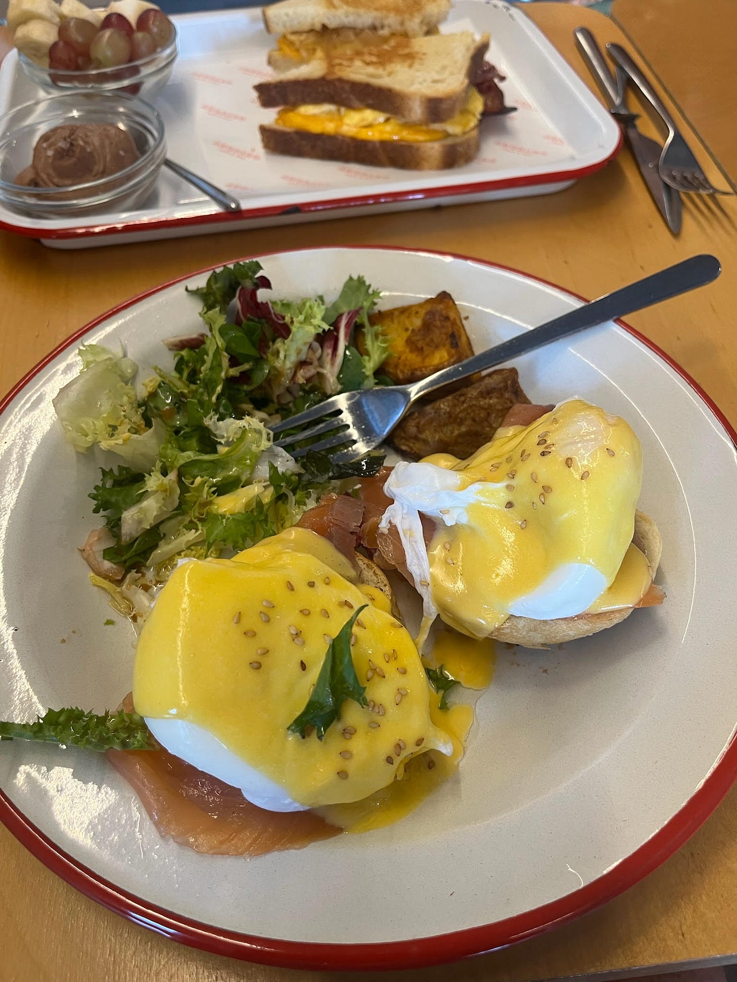 Bryan had found a small brunch cafe called Adorado Cafe, so we stopped in there The food there was delicious. We ordered a variety of dishes: eggs Benedict with Jamón Iberico and salmon, the local breakfast plate with eggs, fruit, and a sweet with freshly-squeezed orange juice. Jim had a boring American breakfast with pancakes and bacon, and he seemed to love it. The Chai Tea Latte was delicious, as were the Cappuccinos. It was a quaint place with outstanding food and wonderful service.